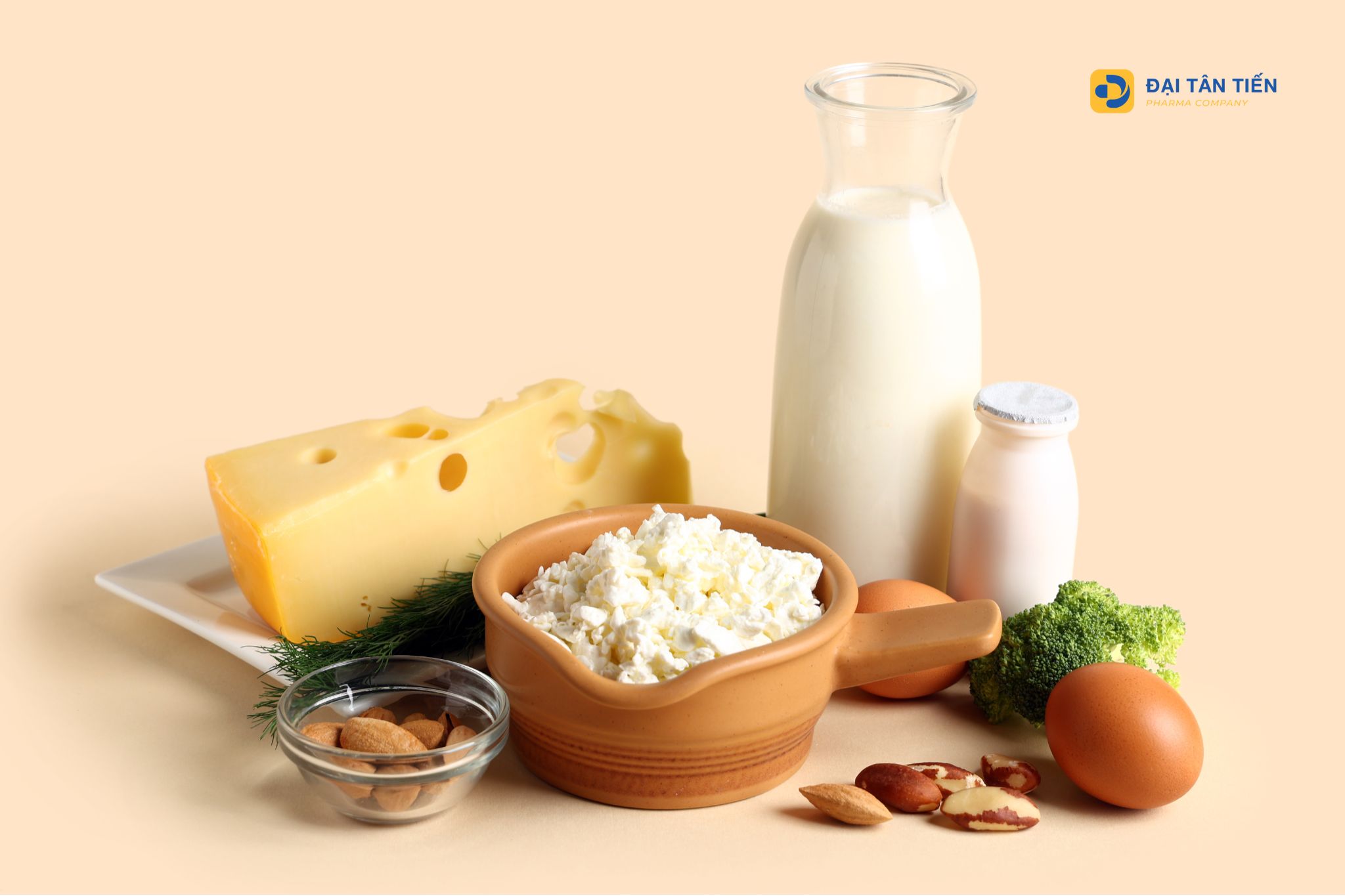 Thực phẩm giàu canxi như sữa, cá nhỏ ăn cả xương, rau xanh đậm giúp cung cấp canxi tự nhiên và hỗ trợ hấp thu tốt hơn.