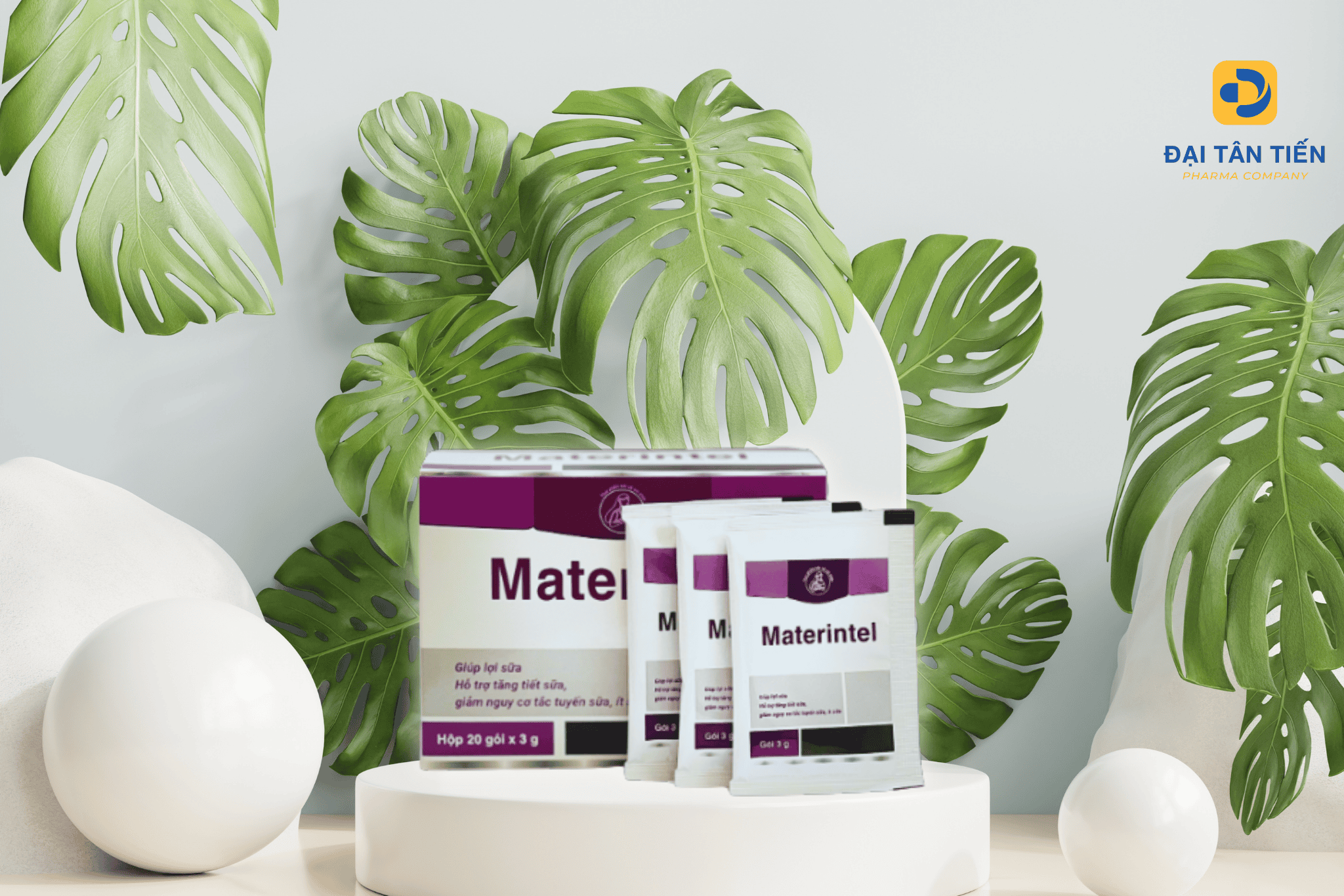 MATERINTEL là cốm lợi sữa từ thảo dược như chè vằng, thiên môn chùm, bồ công anh, thông thảo...