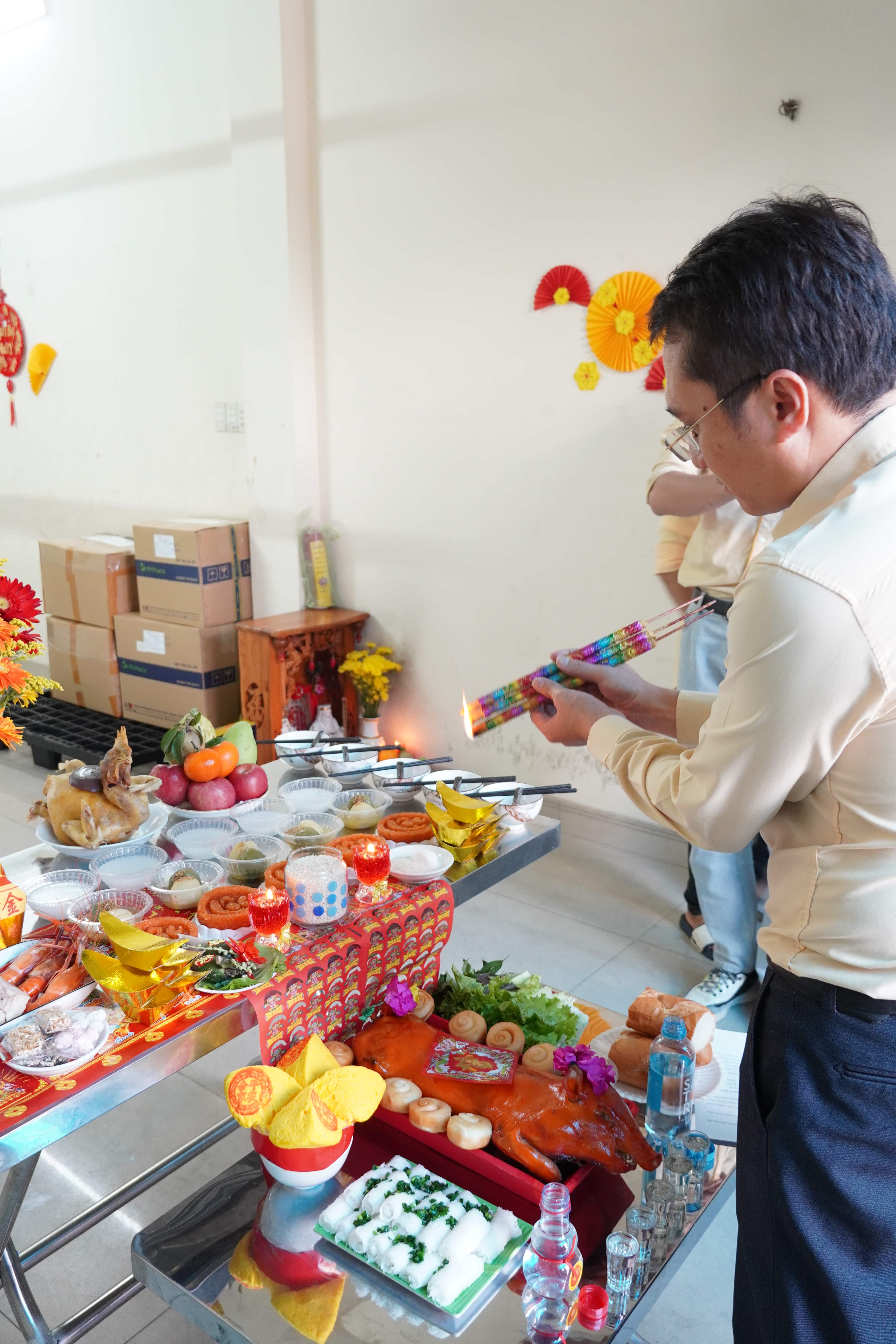 Mở đầu với nghi thức đốt nhang khai trương, mọi người thắp hương Thần Tài - Ông Địa, cầu mong một năm kinh doanh thuận lợi, sức khoẻ dồi dào, tài lộc sung túc. Ngay sau đó là phần bốc bao lì xì - khoảng khắc được mong chờ nhất khi ai ai cũng hào hứng đón nhận lộc đầu năm, gửi gắm những hy vọng cho một năm mới may mắn và đầy khởi sắc.