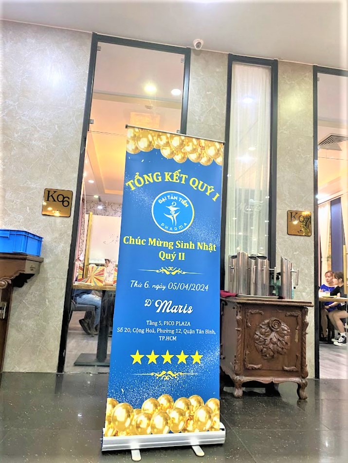 Vào tối ngày 05/04 vừa qua tại Nhà hàng D'Maris ở Tầng 5, PICO PLAZA số 20 đường Cộng Hoà, phường 12, Quận Tân Bình, TP.HCM đã diễn ra buổi "TỔNG KẾT QUÝ I NĂM 2024" cho các thành viên của Đại Tân Tiến Pharma miền Nam. Buổi tổng kết đã khép lại vô cùng thành công và ý nghĩa.