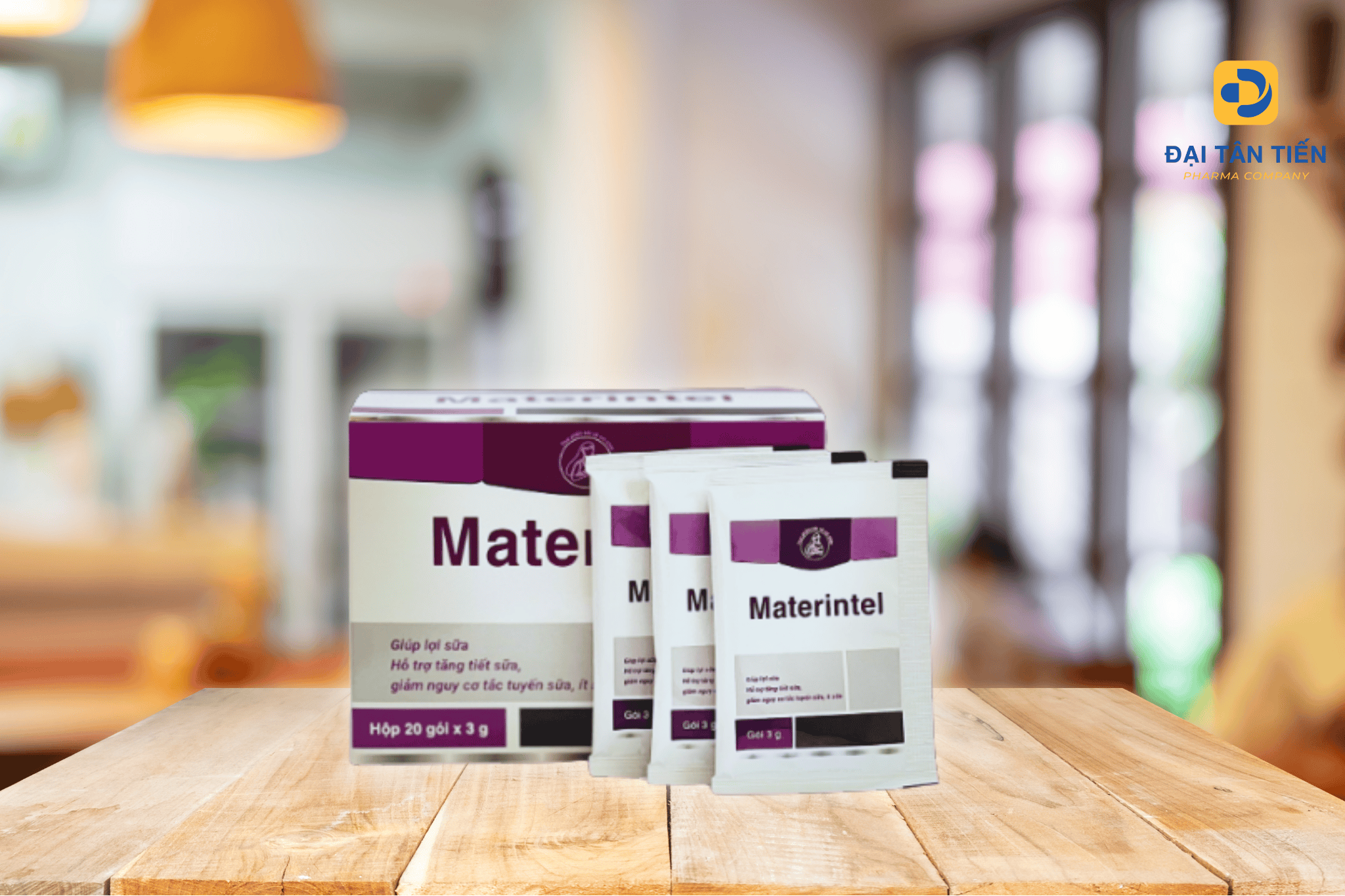 MATERINTEL chứa chè vằng, thiên môn chùm, thông thảo, bồ công anh… giúp điều hòa nội tiết, hỗ trợ tăng tiết prolactin tự nhiên.