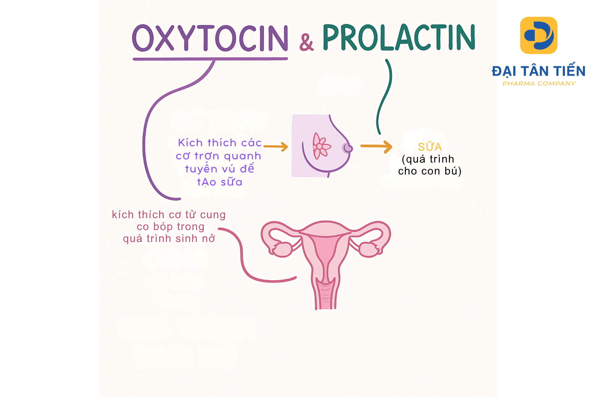 - Nếu prolactin tạo sữa, thì oxytocin là “người vận chuyển” – vai trò của prolactin và oxytocin luôn đi đôi.