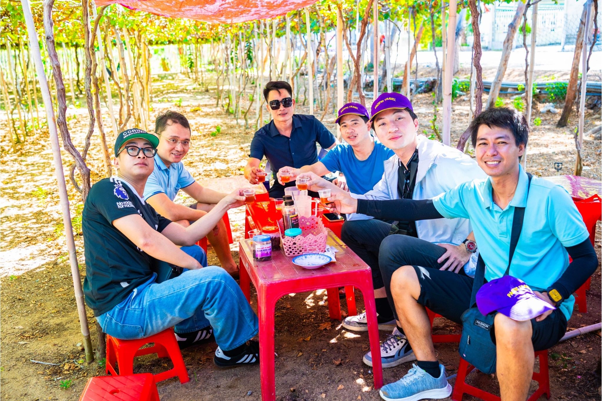 Mọi người chụp hình tập thể tại vườn nho.